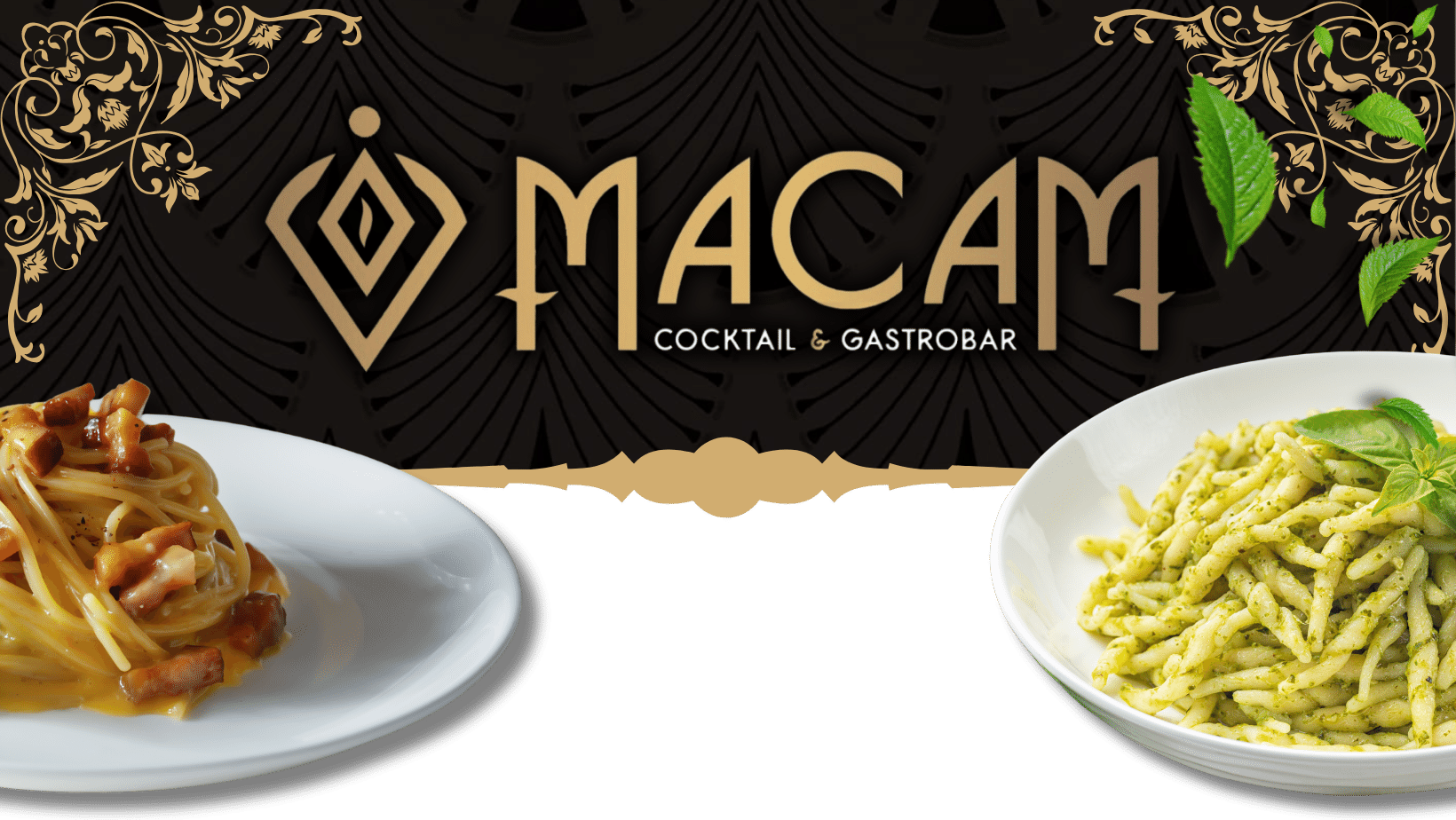 Tagliatelle Macam (tagliatelle con tinta de calamares, gambon, tomate cherry y aceite EVO) € 14.00